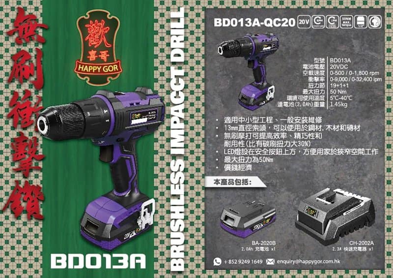 歡喜哥 無刷衝擊鑽 BD013A-QC20
